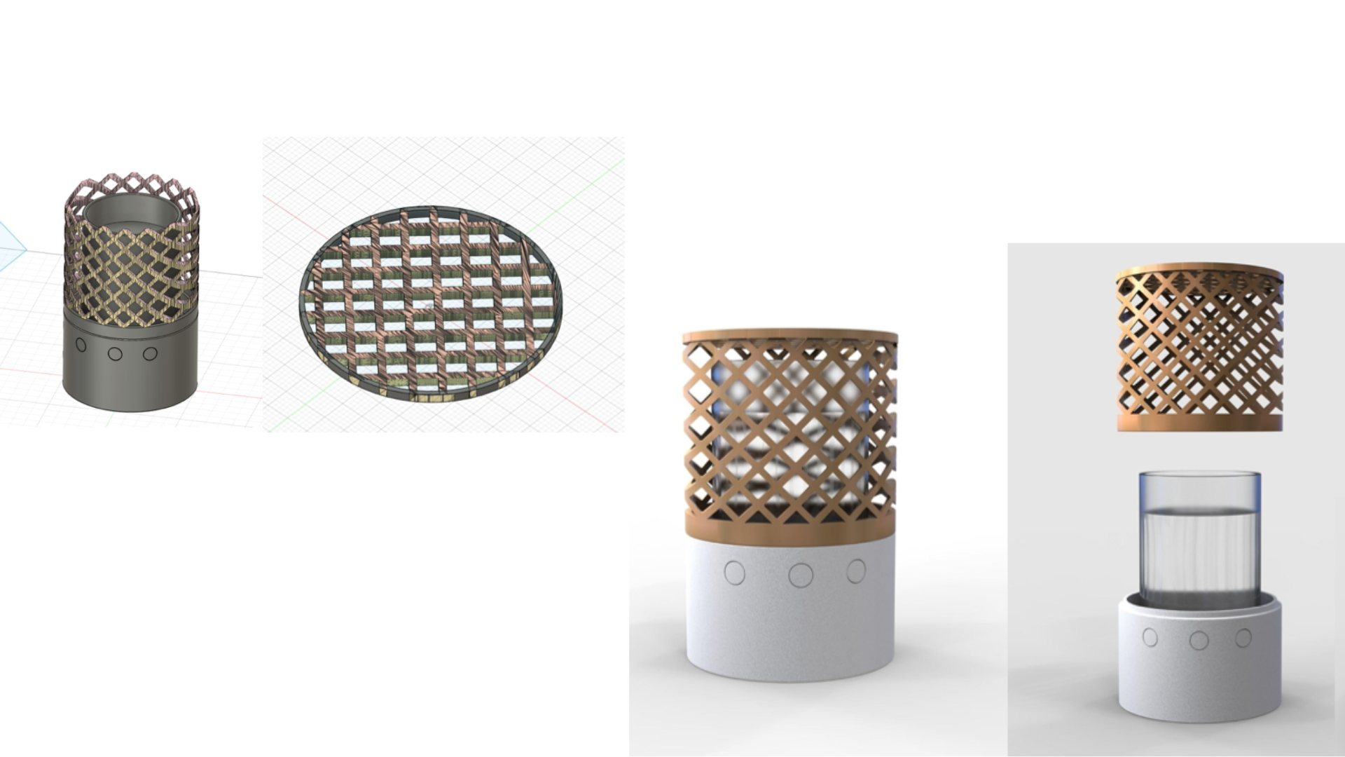 Refining the concept toward a simpler, more elegant form, I focused on the design to the right—drawing inspiration from natural materials and user-friendly functionality.